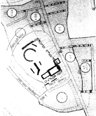 Zeichnung 3 (Versuch Aufbauten darzustellen, Vorburg und Gräben)