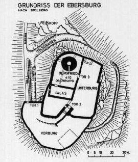 Lage der Vorburg und möglicher Zugang wahrscheinlich wie bei Ebersburg, Landkreis Nordhausen: