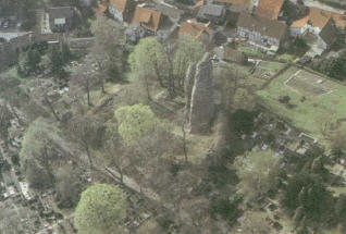 „An der Stelle, wo die Ostera verehrt wurde, erhob sich später eine Burg.— Die Zeit ihrer Zerstörung ist ungewiß. Ein eingefallener Thurm, nicht weit vom Harzthore der Stadt, und weniges andere Gemäuer, sind die noch vorhandenen Ruinen der Burg"