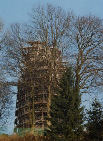 Es kann weiterhin angenommen werden, dass der Bergfried unserer Witterung entsprechend mit einem leichten Dach versehen war, das die Rundumsicht nich beeinträchtigen durfte und im Ernstfall abgeworfen werden konnte um den Verteidigern mehr Platz zu verschaffen, z.B. für den Aufbau einer Wurfmaschine.