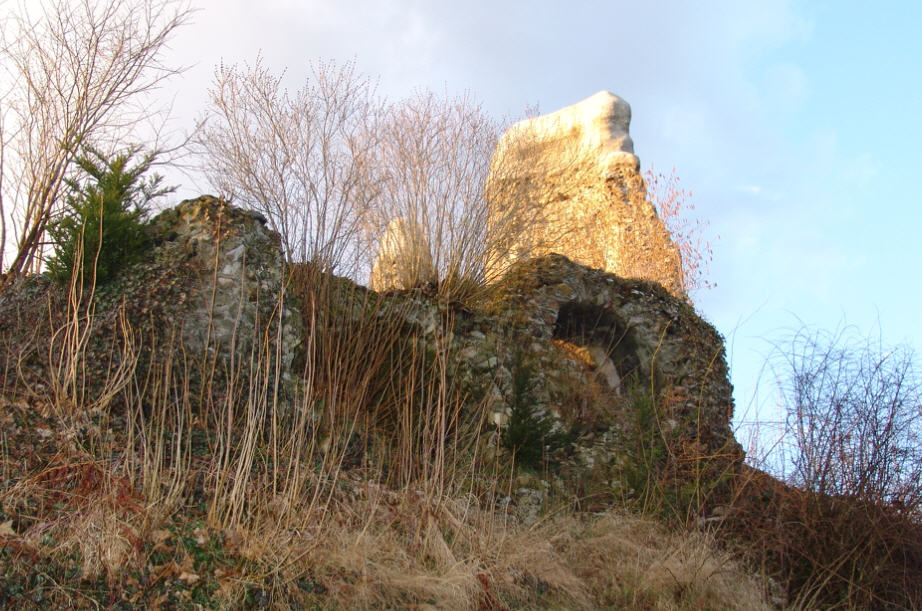 „Später im 14. Jahrhundert wird die Burg als Besitztum eines gewissen Balduin de Piscinia (um 1332) erwähnt, über ihre sonstigen Schicksale aber, und wann sie zerstört  worden, wissen wir nichts. Jetzt blickt aus den Trümmern   nur noch ein halb eingefallener Thurm auf die Stadt herab".
