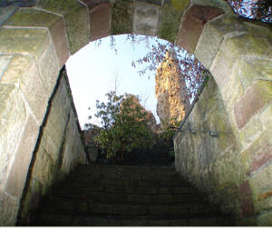Die herrlichste Ruine an dem ganzen Schlosse ist ein alter runder Turm, mit 4-6 Ellen dicken Mauern; allein er ist noch halb übrig, denn seine ganze Vorderseite ist herabgestürzt. Die andere Hälfte hat sich auch schon oben geteilt, und das eine Stück wird auch nicht mehr Stürmen trotzen, obgleich die Hinterseite noch ziemlich fest ist. Der Turm hat eine große Höhe. Inwendig kann man noch deutlich die Stockwerke unterscheiden, die der Turm ehemals hatte. Man zählt deren 5 übereinander. Da das untere von diesen ganz niedrig an der Erde ist, so kann man vermuten, daß der Turm unten noch tiefür war, ferne Mauern aber von dem herabgesetzten Schutt bedeckt wurden und dadurch der Boden höher wurde. Oben war der Turm wahrscheinlich auch noch höher, denn er sieht daselbst sehr verwittert aus, auch sieht man darauf keine Schlußsteine oder Zinnen. Schon ehemals war der Turm wegen seiner hohen Spitze bekannt und daher war das Sprichwort auf dem Harze allgemeint „Daß Dich der Teufel über Osterode führe". (Damals hieß also die Burg wohl noch Osterode.) Ordentliche Fensteröffnungen sieht man darin nicht, sondern nur einige Löcher, wo die Stockwerke waren und dann noch eine gewölbte Oeffnung, in der zwei Stufen in die Mauer gehen sollen, wozu sie dienten, weiß man nicht. Sie gehörten vielleicht zu einer Treppe, die in der Mauer des Turmes von einem Stockwerk ins andere führte.