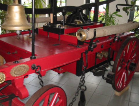 Die unten abgebildete Landspritze, die in Freiheit bei Bränden zum Einsatz kam und heute im Feuerwehrhaus an der Bleichestelle steht, wurde im Juli 1877 von der Firma Carl Metz in Heidelberg an die Gemeinde Freiheit bei Osterode geliefert und versah dort jahrelang ihren Dienst.