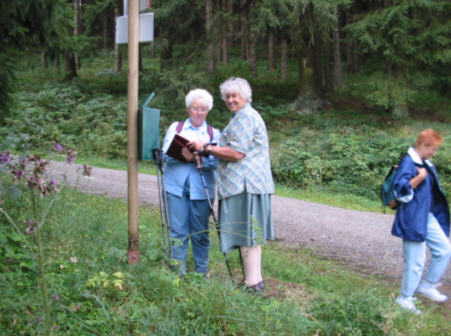 Die Mitglieder der Turngruppe des DRK Freiheit waren am Sonnabend, 21.08.2004 zu einer Wanderung über den Eselplatz nach Lerbach eingeladen. Um 09.00 Uhr starteten die wanderfreudigen Mitglieder an der Schule. Auf dem Weg über den Hexenstieg trug sich die Wandergruppe in das Wanderbuch ein.