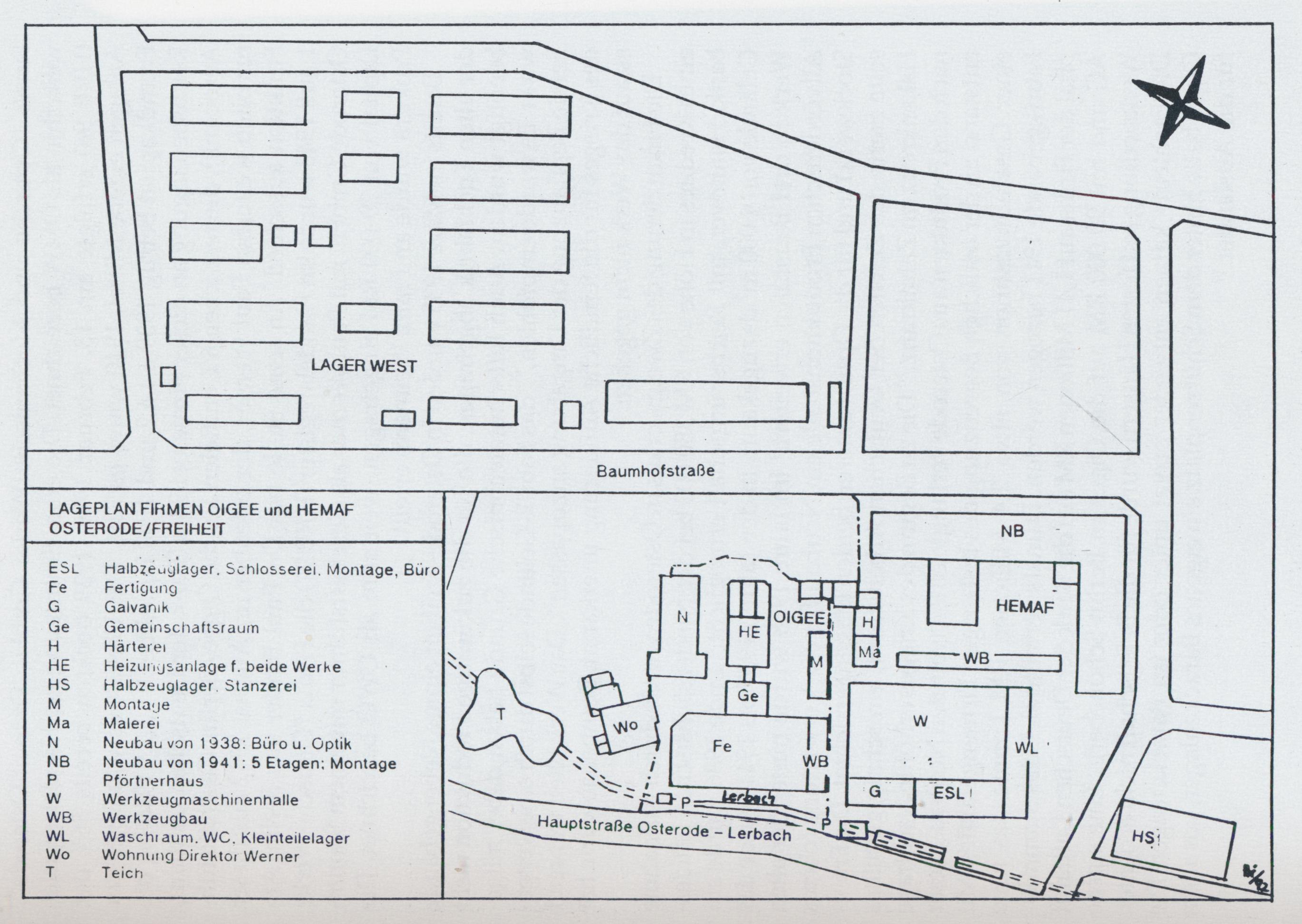 Im 2. Weltkrieg produzierte die Firma Zielgeräte und Bombenabwurfeinrichtungen für die Luftwaffe. Da im Osteroder Raum nicht genügend Fachkräfte vorhanden waren, wurden vermehrt Fremdarbeiter eingesetzt. Unter ihnen waren Polen, Russen, kroatische Frauen und kriegsgefangene Franzosen, die in einem Barackenlager hinter dem Freiheiter Schützenplatz untergebracht waren.